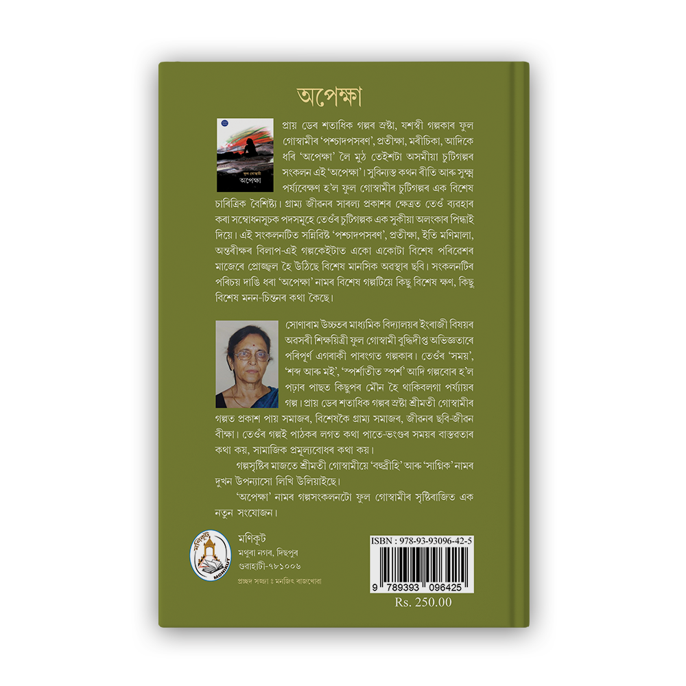 The collection “Opekkha” (Waiting) by the renowned Assamese short story writer Phul Goswami, who has authored around one and a half hundred stories, includes a total of twenty-three Assamese short stories such as “Poshchadposoron” (Retreat), “Pratiksha” (Expectation), and “Morichika” (Mirage), among others.