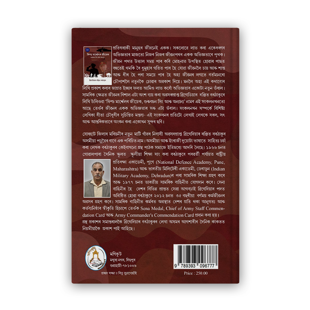This collection titled “Field Marshalar Jiek, Gurubachan Singh Aru Annyanya,” written by retired Brigadier Ranjit Borthakur, who spent a significant part of his life in the military field, also contains a small reservoir of his unique life experiences. About this collection, the noted writer Rita Choudhury has thoughtfully remarked that each piece in the book is like a beautiful picture, drawn with simplicity, honesty, and sincerity by the author.