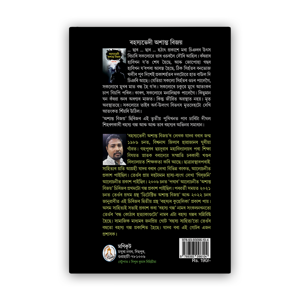 “Rahashyabhedi Ashanta Bijoy” is a collection of four long detective stories. This is the third book of Ashanta Bijoy series. Ashanta Baruah and Bijoy Phukan are the main characters of the series. They are the young officers of C. I. , a crime investigation agency. Both are very close friends and solve the complicated cases in a very intelligent way. In the pages of all the four stories of the book “Rahasysbhedi Ashanta Bijoy”, you will find thrill, suspense, doubt and at the end there is a surprise. The presentation of the stories along with the characters with applications of modern crime detection technology has made the book unique and interesting.
